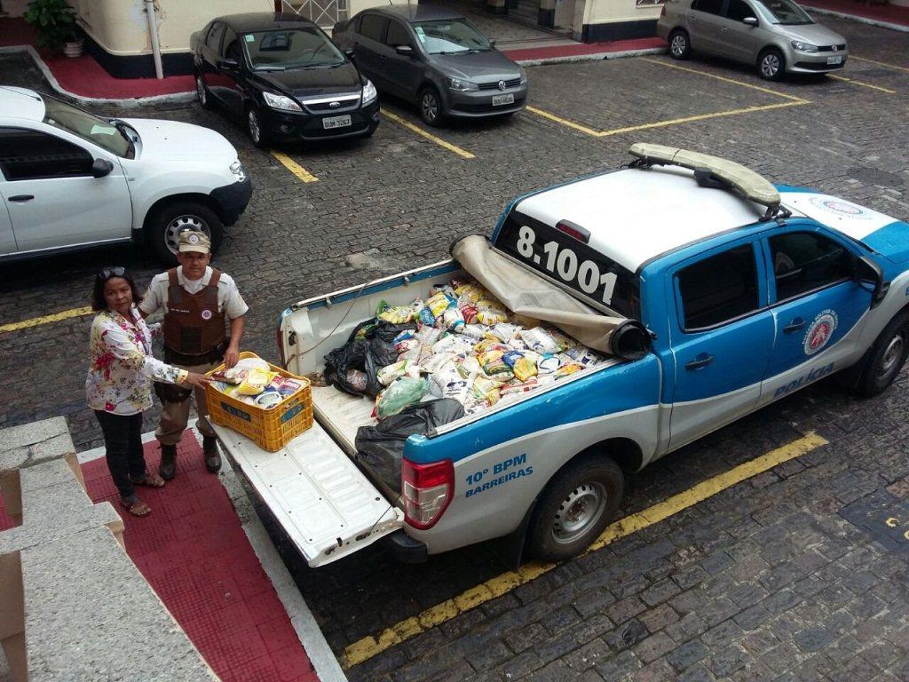 O comandante do 10º BPM, Maj PM Camilo Otávio Alonso Uzêda se sensibilizou com a situação calamitosa dos desabrigados da Avenida San Martin em Salvador – Ba e decidiu destinar os alimentos a esta comunidade, realizando a entrega no dia 04 de maio de 2015 (segunda-feira).