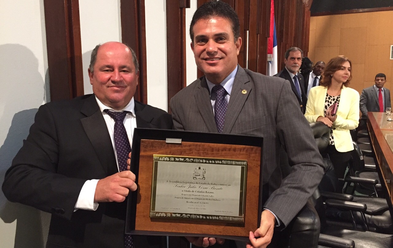 O Título de Cidadão Baiano foi entregue nesta segunda-feira (25), em sessão especial na ALBA (Assembleia Legislativa da Bahia), pelo deputado Eduardo Salles. A homenagem, de autoria do ex-parlamentar Hebert Barbosa, foi aprovada em setembro de 2013.