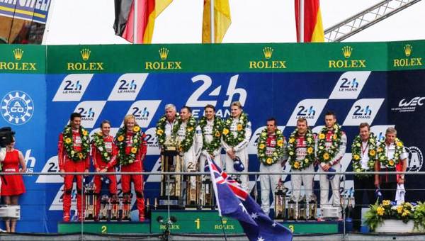 Depois de 24 horas de competição duríssima, inclusive com chuva, e 30 visitas ao box para troca de pilotos, pneus e reabastecimento, a Porsche, sempre seguida de perto pela Audi, fez os dois primeiros lugares no pódio em Le Mans. As corridas de longa duração são importantes, porque desenvolvem a tecnologia que vai ser transferida aos carros de rua logo a seguir.