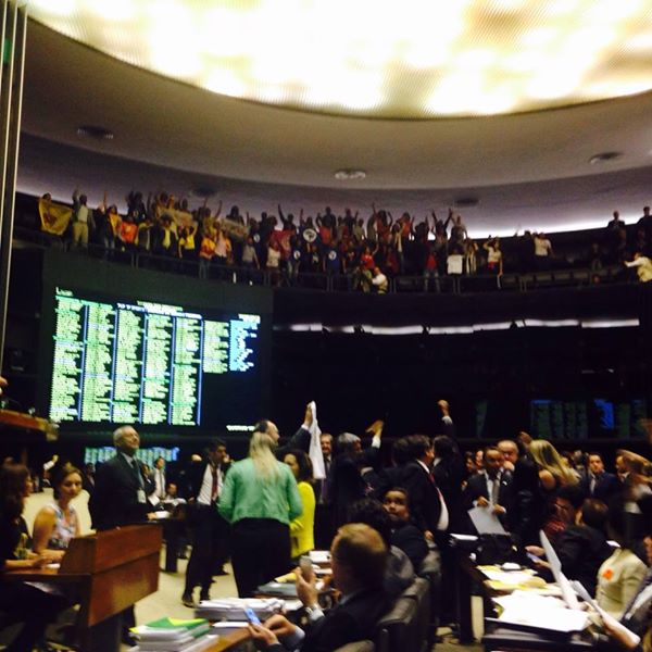 O Plenário da Câmara dos Deputados rejeitou o texto da comissão especial que reduz a maioridade penal (PEC 171/93). Foram 303 votos a favor, quando o mínimo necessário eram 308. Foram 184 votos contra e 3 abstenções.