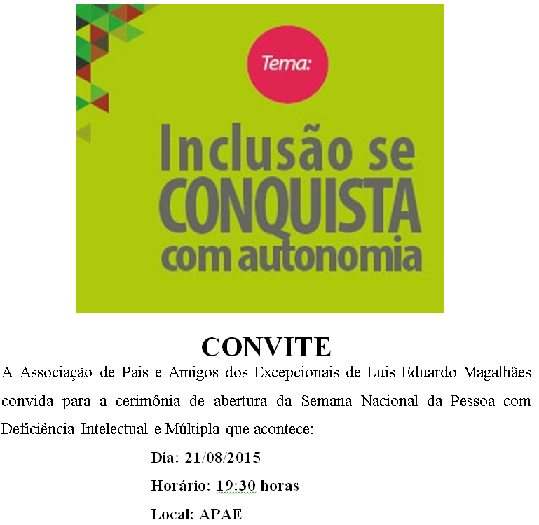 APAE convida para abertura da Semana Nacional da Pessoa com Deficiência Intelectual