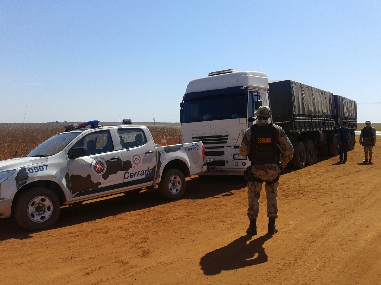 Uma guarnição da CIPE Cerrado apreendeu hoje um caminhão bi-trem, 7 eixos, carregado com soja roubada de uma unidade da BUNGE Alimentos na Fazenda Antas, em São Desidério. A carreta foi localizada, sem motorista, nas proximidades da fazenda Warpol e calcula-se que continha 50 toneladas de grãos de soja.