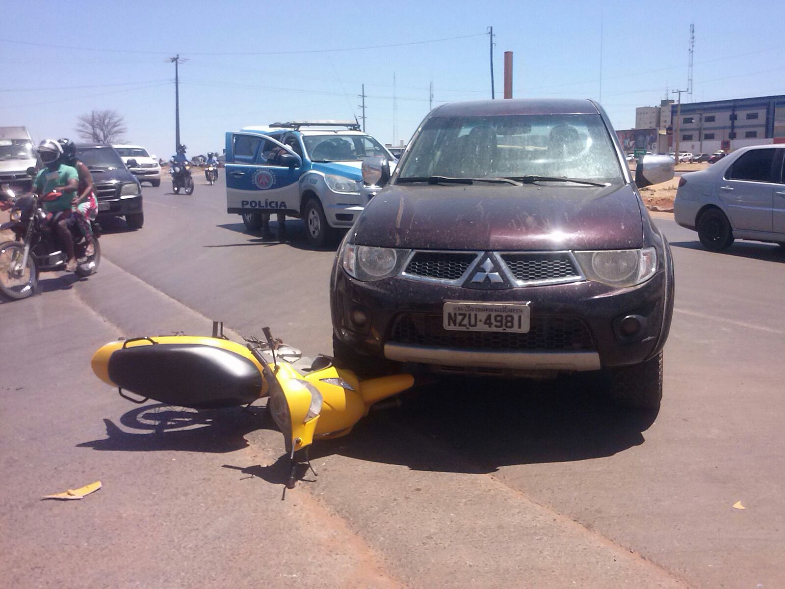 No acidente de hoje, entre uma Honda Bizz e uma Mitsubishi L 200, Camila Souza Nascimento, a motociclista de 22 anos levou a pior e precisou ser socorrida pela SAMU para a UPA.