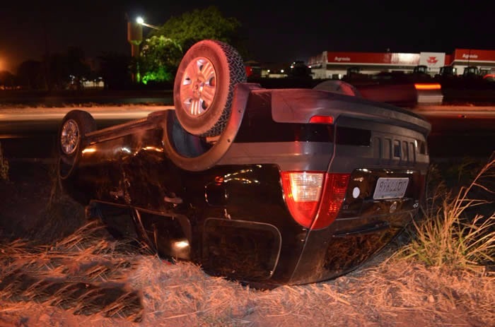 No mesmo dia de domingo, outro acidente com capotamento no trecho duplicado da BR 242/020, na travessia de Luís Eduardo Magalhães. Agora no início da noite, o motorista de um Fiat Uno saiu da pista e capotou. Mais duas pessoas ocupavam o carro. Ninguém se feriu. Fotos e informações do repórter Agnaldo Santos.
