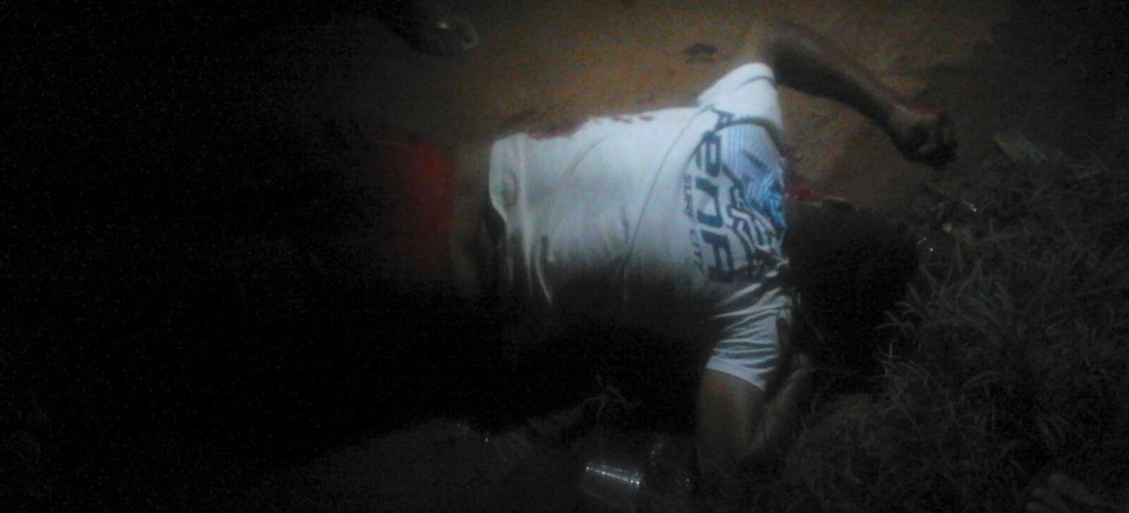 O crime aconteceu próximo ao posto de combustíveis da Avenida Castello Branco. Acima, o local do crime e os curiosos de sempre. Abaixo, o corpo do atleta.