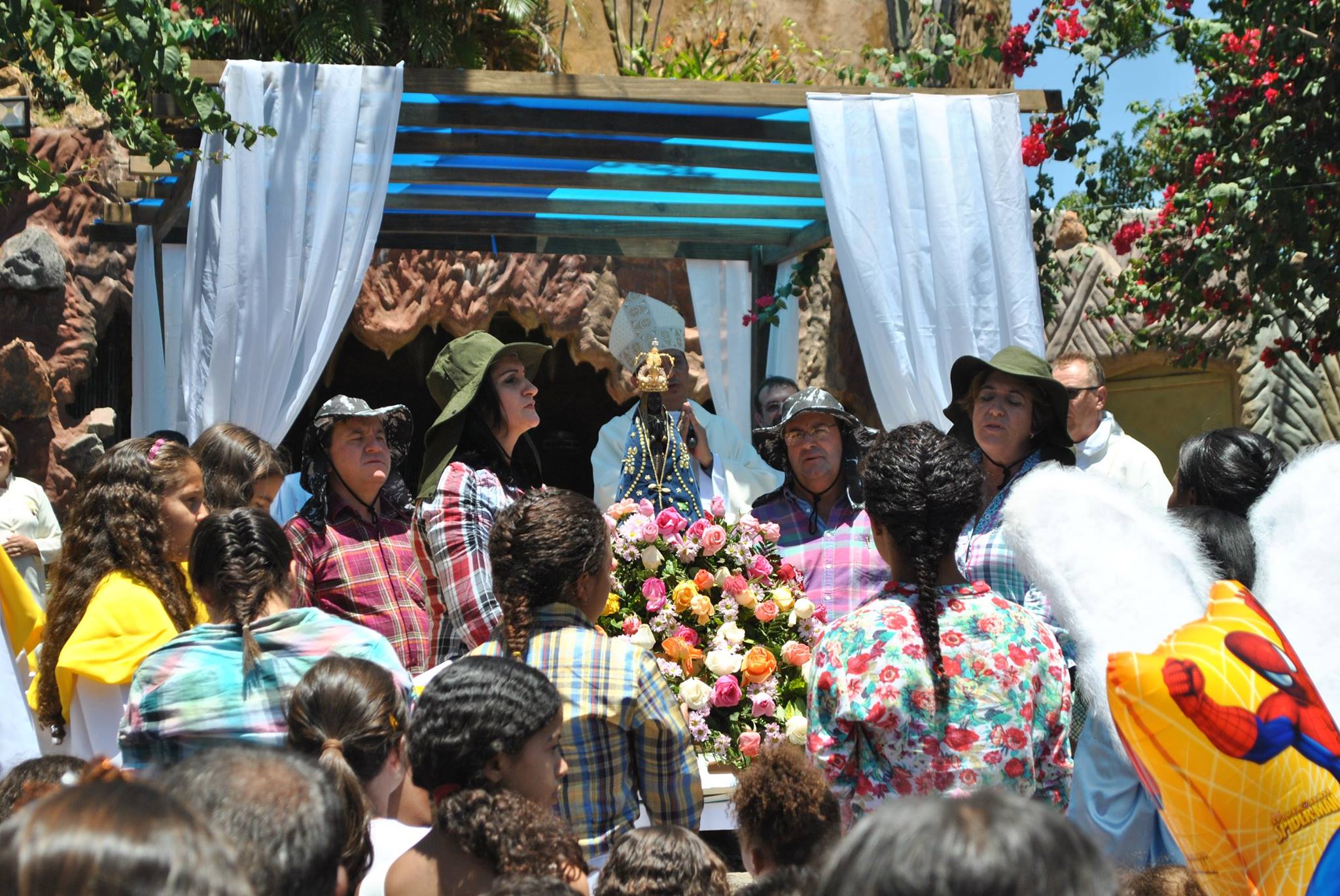 Às 08 horas centenas de fiéis, acompanharam com muita devoção a imagem de Nossa Senhora Aparecida e dos Santos Padroeiros das Comunidades, saindo da Igreja Matriz, em procissão pelas ruas da cidade, até a Gruta onde foi celebrada a missa.