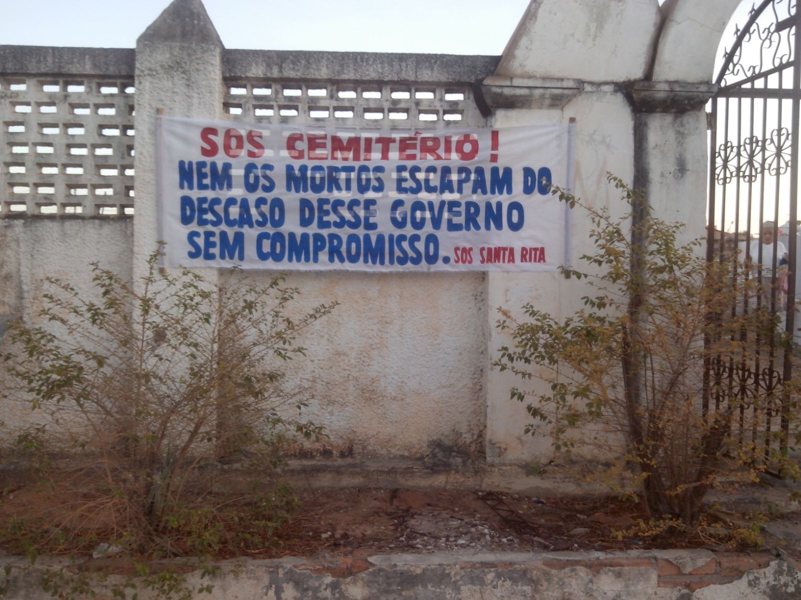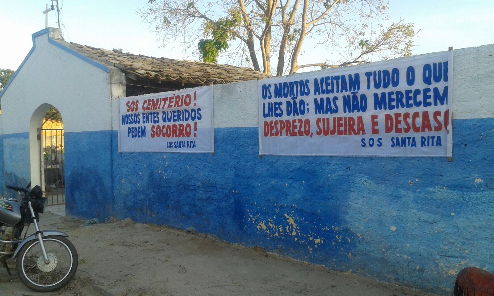 Hoje, dia de visitar os mortos, o cemitério de Santa Rita de Cássia amanheceu decorado com faixas de protesto dos moradores, que lamentam o descaso da municipalidade com o campo santo.