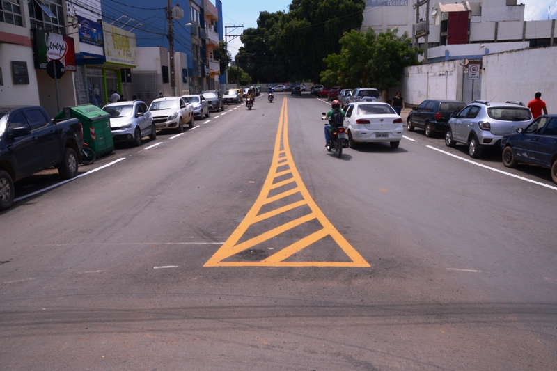 Com o recapeamento finalizado nas principais ruas do centro, a Prefeitura de Barreiras por meio da Secretaria de Segurança Cidadão e Trânsito, iniciou a pintura da sinalização horizontal de pavimento com tinta refletiva nas cores branca e amarela.