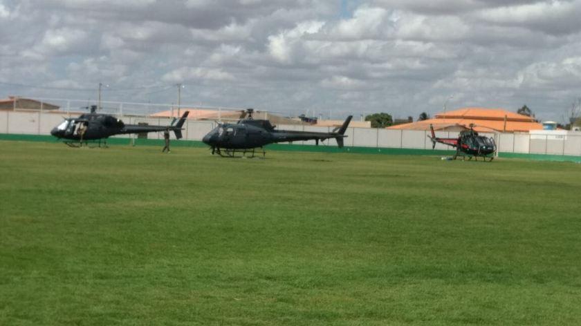 A cidade de João Dourado, a 21Km de Irecê, foi surpreendida nesta terça-feira (28), com a chegada de um forte aparato da Polícia Federal (PF). Pelo menos três helicópteros aterrissaram em um campo de futebol nesta manhã.