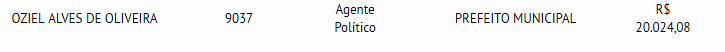 HUMBERTO SANTA CRUZ FILHO 3844 Agente Político PREFEITO MUNICIPAL R$ 20.024,08 R$ 0,00 R$ 0,00.