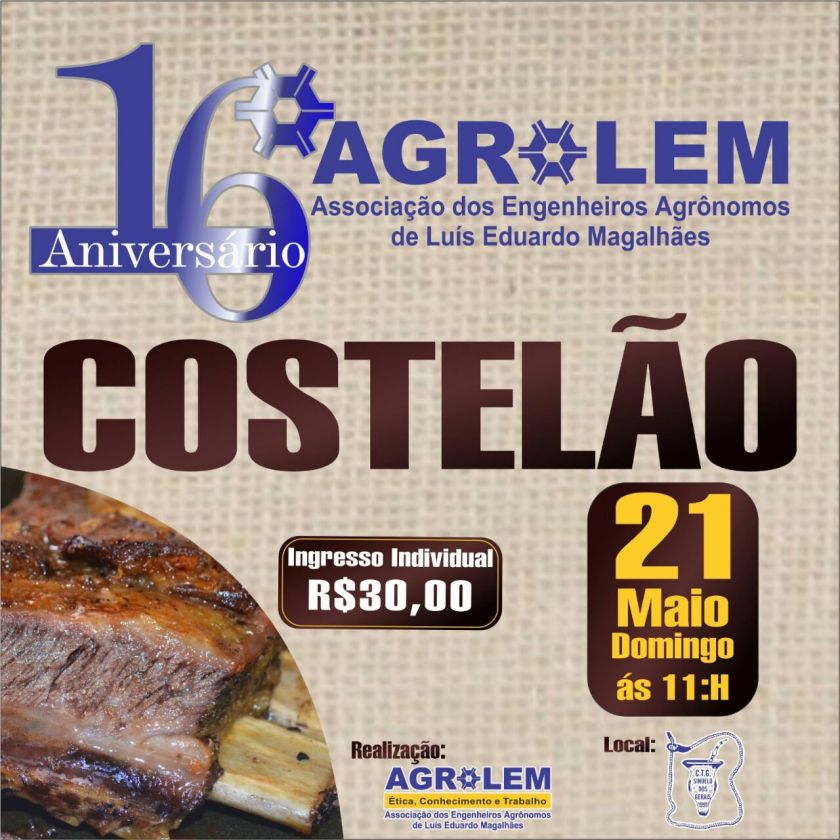 Ingressos a venda na AGROLEM e no LABORATÓRIO EXXATO. Mais informações através dos telefones 77-3628-1002 ou 77-98129-7447, com Gisele.