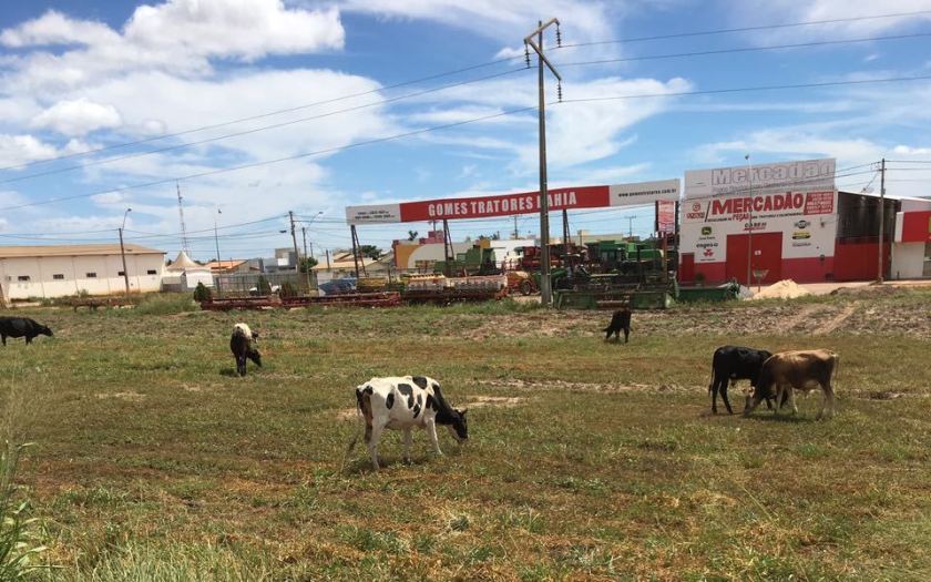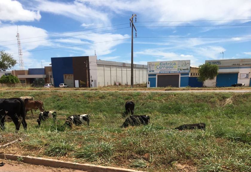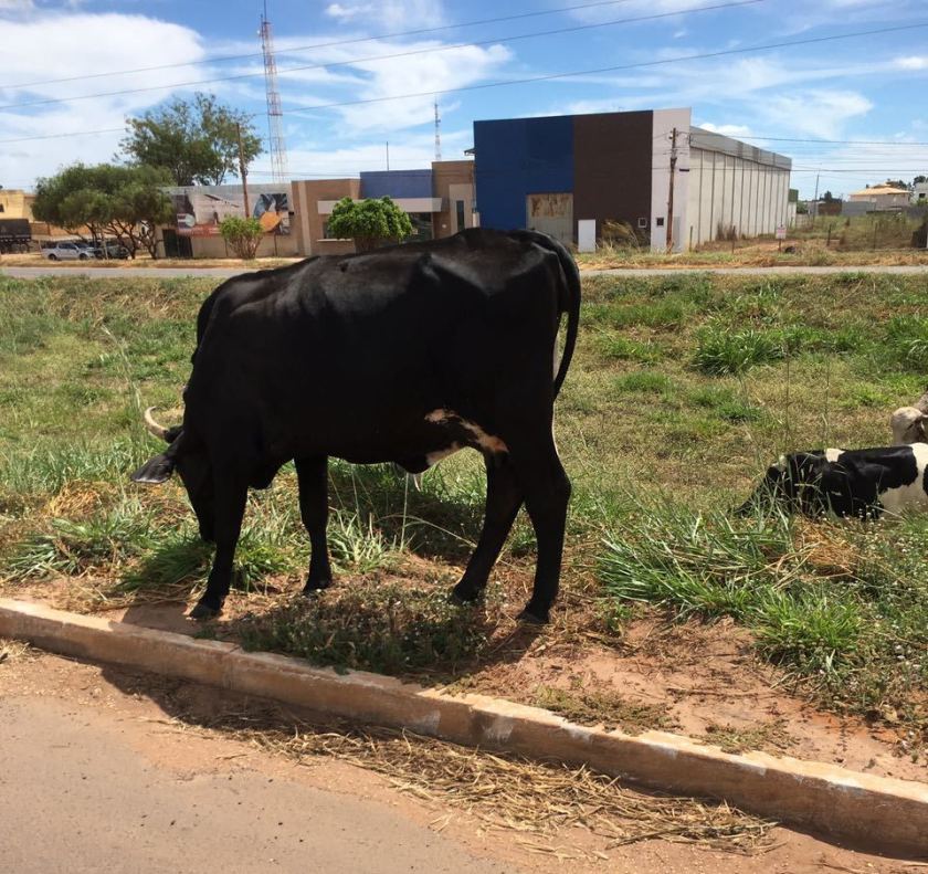 Uma bela ponta de gado leiteiro pastava hoje pela manhã entre a pista principal do trecho duplicado da BR 242 e a pista lateral, em Luís Eduardo Magalhães. É mais uma demonstração da pujança do agronegócio em LEM.