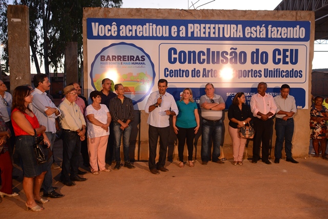 Com a autorização da conclusão da obra, a construtora iniciou os trabalhos na manhã desta quarta-feira, 14. Para a construção do Centro de Artes e Esportes Unificados – CEU de Barreiras, para a construção do equipamento foram disponibilizados R$1.452.073,00 através do Ministério do Turismo, há época deste montante foram aplicados 33%, que corresponde a R$ 508.833,71 e, para conclusão da obra, ainda serão investidos R$ 1.488.000,00.