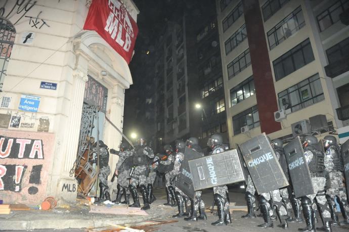 As tropas de choque da Brigada Militar do Rio Grande do Sul resolveram expulsar 65 famílias que haviam invadido um prédio no Centro de Porto Alegre, no início da noite de ontem, quando a temperatura caía para uma madrugada gelada.