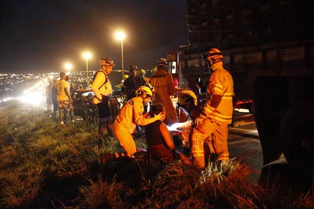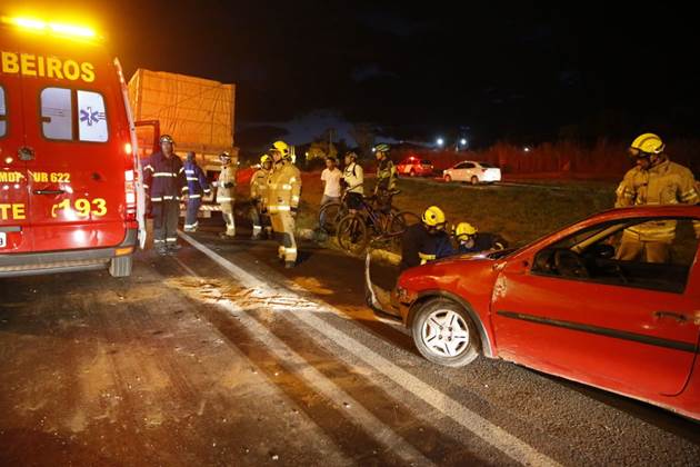 De acordo com o Corpo de Bombeiros, a mulher teria surpreendido o companheiro ao puxar o volante do carro do casal, durante uma discussão, para cima de um caminhão que trafegava em baixa velocidade na faixa da direita.