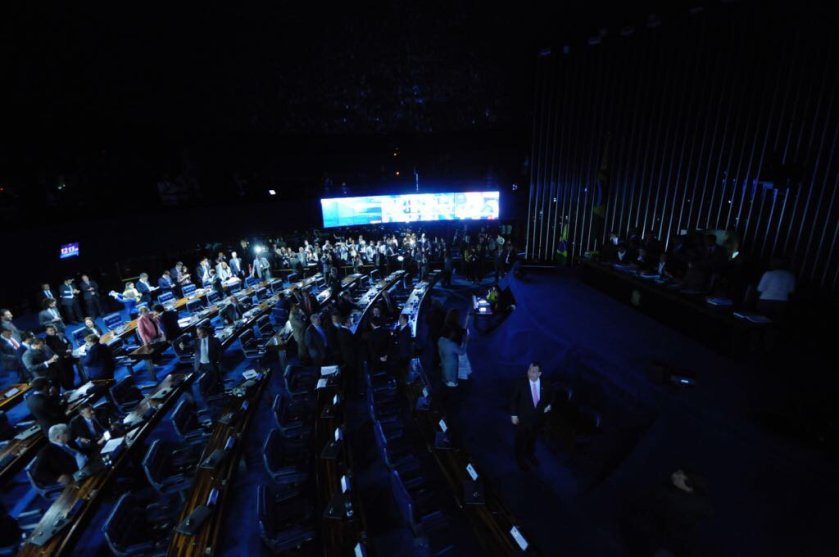 Cerca de cinco minutos após Eunício ter determinado a suspensão, as luzes no plenário foram parcialmente apagadas. Nessa hora, o painel eletrônico marcava a presença de 49 dos 81 senadores no plenário.
