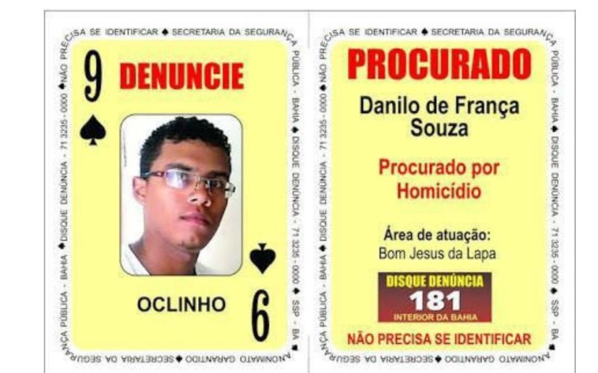 Danilo França Souza, de 23 anos, o nove de espadas do Baralho do Crime da Secretaria da Segurança Pública (SSP), foi preso em Barreiras, no sudoeste do estado.