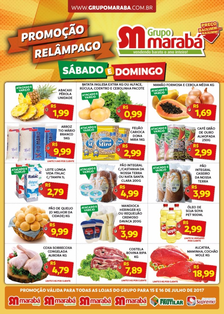 Promoções de sábado e domingo na rede de supermercados Marabá