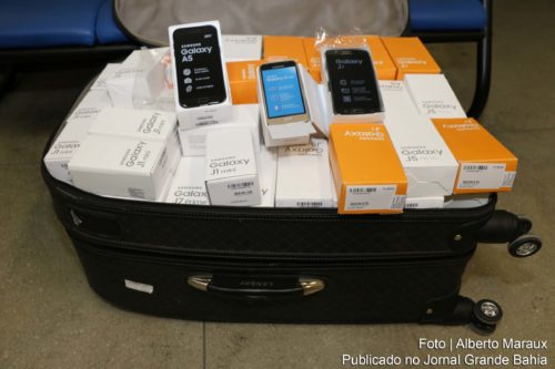 A Delegacia de Repressão a Furtos e Roubos (DRFR) apura a procedência de uma mala, apreendida na semana passada, pela Receita Federal, no Aeroporto Internacional de Salvador Deputado Luís Eduardo Magalhães, com 150 smartphones da marca Samsung, após passagem pelo aparelho de Raio X. O proprietário da bagagem chegou num voo de São Paulo e, no momento da apreensão, estava sem a nota fiscal do produto.