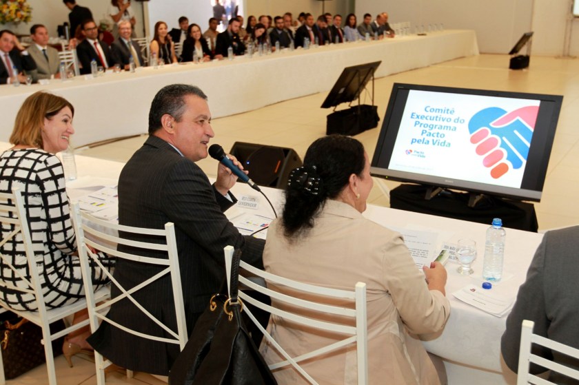 Mais cedo, às 9 horas, a presidente participou, ao lado do governador Rui Costa, de uma reunião do Pacto Pela Vida.