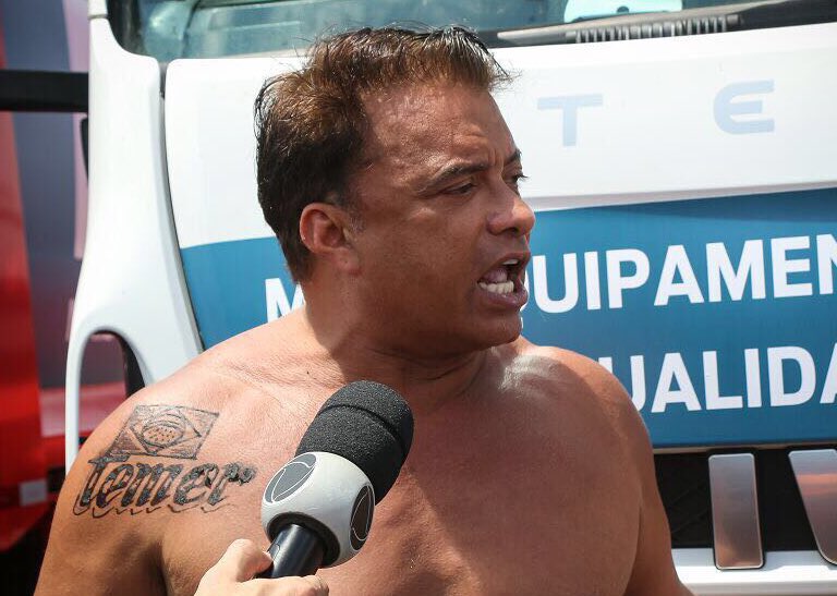 O deputado federal Wladimir Costa (SD-PA) pagou R$ 1.200,00 pra tatuar o nome do Temer no ombro direito. Resta saber quanto ele recebeu de emendas parlamentares para demonstrar tamanha devoção. Wladimir Costa foi aquele, que em explícita falta de decoro, explodiu um foguete de confetes no dia da votação do impeachment de Dilma. Este é maluco mesmo. Ao restante dos deputados falta vergonha na cara.