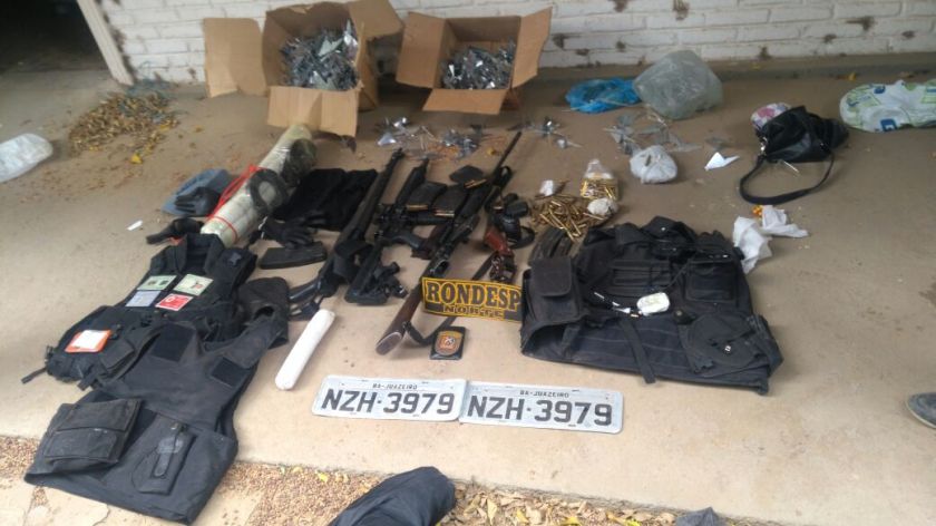 A Polícia Militar entrou em confronto, às 6 horas de hoje, com uma quadrilha especializada em assalto a bancos, na cidade de Juazeiro, no norte baiano. Cinco elementos foram alvejados, um se entregou e foi apreendido vasto material, inclusive fuzis: