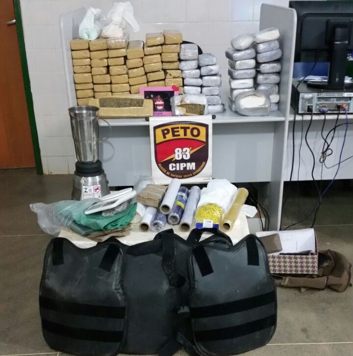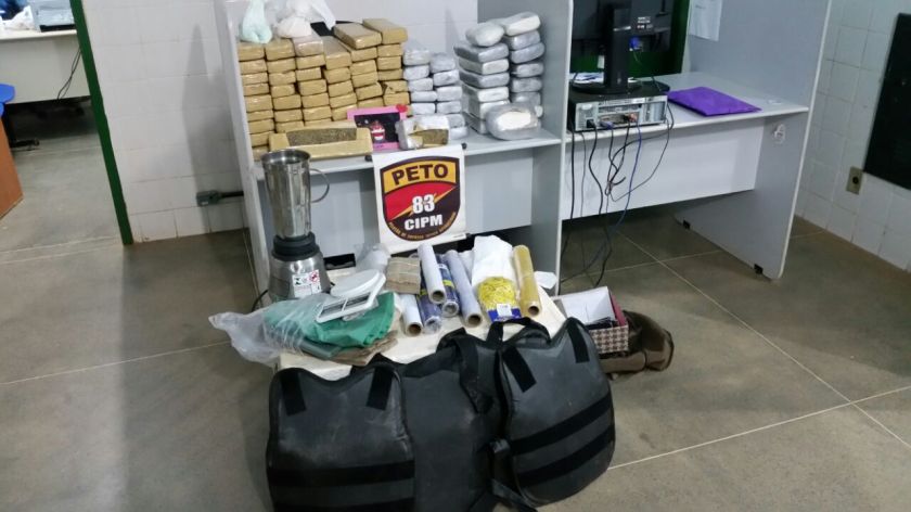 Além da droga, a PM encontrou acessórios típicos do tráfico, como balança de precisão, liquidificador industrial, duas placas de colete balístico e fotos e documentos de JOSEMIR DA SILVA VITORINO, vulgo NEGO JÓ e CARLA CRISTINA DOS SANTOS DA SILVA.
