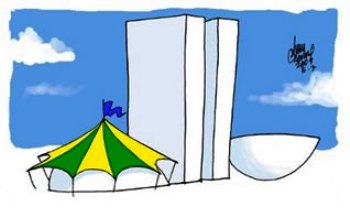 Piorou mais ainda: quando sentou no sofá para ver a novela, a Globo estava reproduzindo as cenas do circo armado na Câmara Federal.