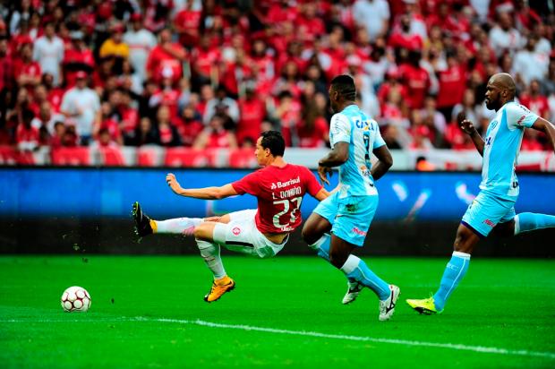 O otimismo se refletiu em campo em um bom início do Inter. Não havia jogadas trabalhadas, toques envolventes, mas sobrava entrega e força para fazer a pressão inicial. Logo aos três minutos, Cuesta testou César com um chute de longe que o goleiro espalmou para escanteio. Aos seis, Sasha brigou contra a marcação, chutou as pernas do zagueiro e caiu, pedindo pênalti. O árbitro não marcou e, na sequência, o Inter tomou um susto.