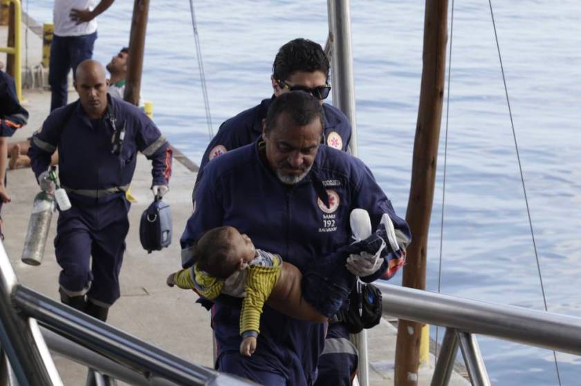 Segundo informações do Comando do 2º Distrito Naval, foram enviadas equipes de busca e resgate para o local. Alguns moradores e pescadores, que estavam nas proximidades, conseguiram usar barcos menores para socorrer algumas pessoas.