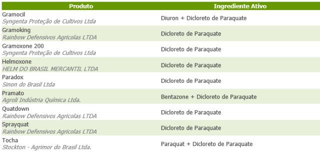 Decisão é pelo banimento total do herbicida após três anos de prazo para transição. A decisão poderá ser revertida caso sejam apresentados fatores que excluam os riscos do produto. Na imagem algumas das marcas comerciais que contém o princípio ativo Paraquat. O herbicida pós-emergente, usado também como dessecante em final de ciclo, é um dos de menores custos do mercado.