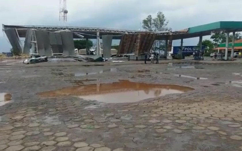 Uma tempestade de granizo cobriu de gelo um trecho da BR-060 e destruiu um posto de combustíveis, neste sábado (30), em Abadiânia, no Entorno do Distrito Federal.