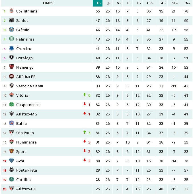 Sete equipes estão separadas por apenas 3 pontos e se ampliarmos essa diferença para 4 pontos, 10 equipes no total disputam o direito de permanecer na elite do futebol.