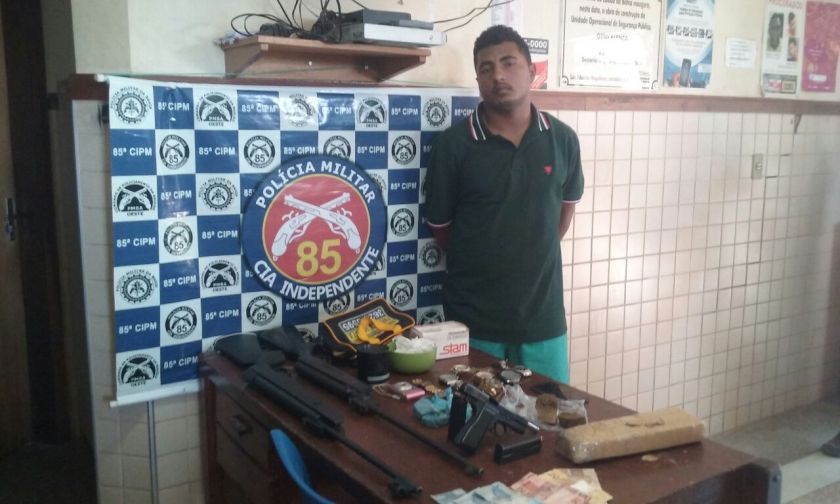 Policiais militares da 85ª CIPM estouraram uma “boca de fumo” na manhã de hoje no bairro Tropical Ville. Foram apreendidos um quilo de maconha, uma pistola de fabricação belga de calibre 9 mm, duas carabinas, munição de 9 mm, relógio, além de certa quantidade em dinheiro.