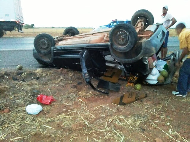 Por volta das 17h deste domingo, 15, cinco pessoas ficaram feridas após o capotamento de um Fiat Uno, cor preta, placa de Brasília-DF, no km 30 da BR 020, próximo ao Posto Oeste, em Roda Velha. A condutora do veículo vinha da cidade de Baianópolis com destino a Brasília-DF.