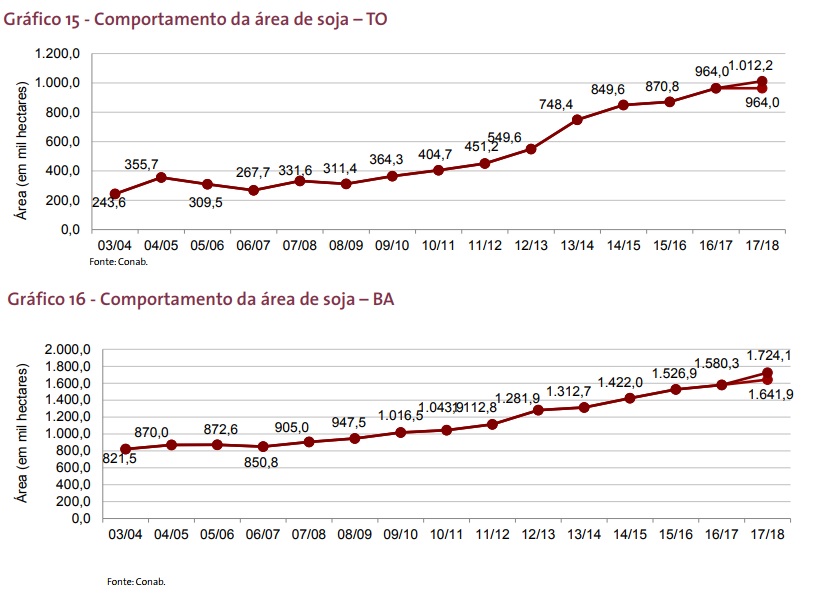 A perspectiva de redução se deve ao fato de que a safra passada registrou recorde de produtividade graças às boas condições climáticas, cenário que pode não se repetir. Para se ter uma idéia, a soja alcançou produtividade de 3.364 kg/hectare na safra 2016/2017. Para a safra atual, a produtividade estimada é de 3.075 kg/hectare, com base nas análises estatísticas das séries históricas e dos pacotes tecnológicos utilizados nos últimos anos.