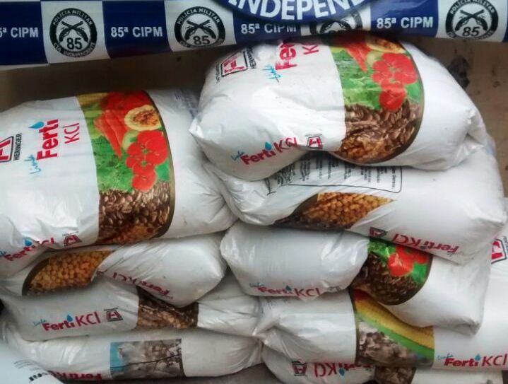 Os homens da lei chegaram e após abordagem encontraram com o quarteto fantástico um revólver calibre 38, Taurus. No prosseguimento da diligência, foram encontrados alguns sacos do fertilizante Cloreto de Potássio, sem documento fiscal. Os quatro foram apresentados na Delegacia de Polícia Judiciária para o devido enquadramento legal.