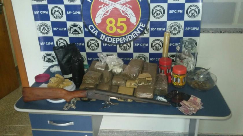 Na boca-de-fumo foi encontrado grande quantidade de maconha, crack, balança de precisão e determinada importância em dinheiro, além de uma arma longa.