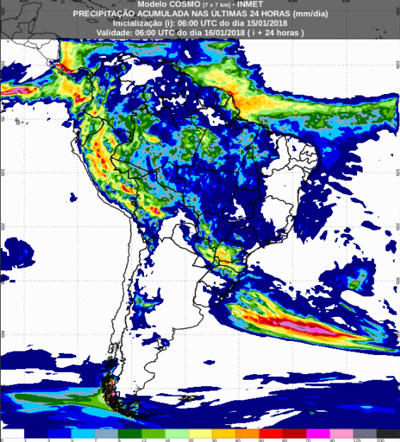 No mapa do INMET podemos ver a chuva sobre o cinturão produtivo do Oeste, se afastando logo depois.
