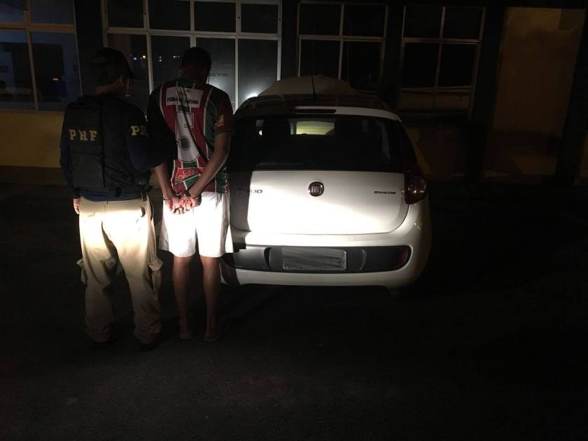 Quando alcançado, o carro estava abandonado no acostamento da rodovia e em seu interior foram encontradas 24 munições de arma calibre 12. Também foi encontrada uma pequena quantidade de maconha além do CRLV com sinais de falsificação. Em buscas nas proximidades, foi localizado um homem com as mãos amarradas com o próprio cadarço, em uma amarração bastante simples de se soltar, informando ser vítima de roubo e que os criminosos o estavam levando até a cidade de Buerarema/BA.