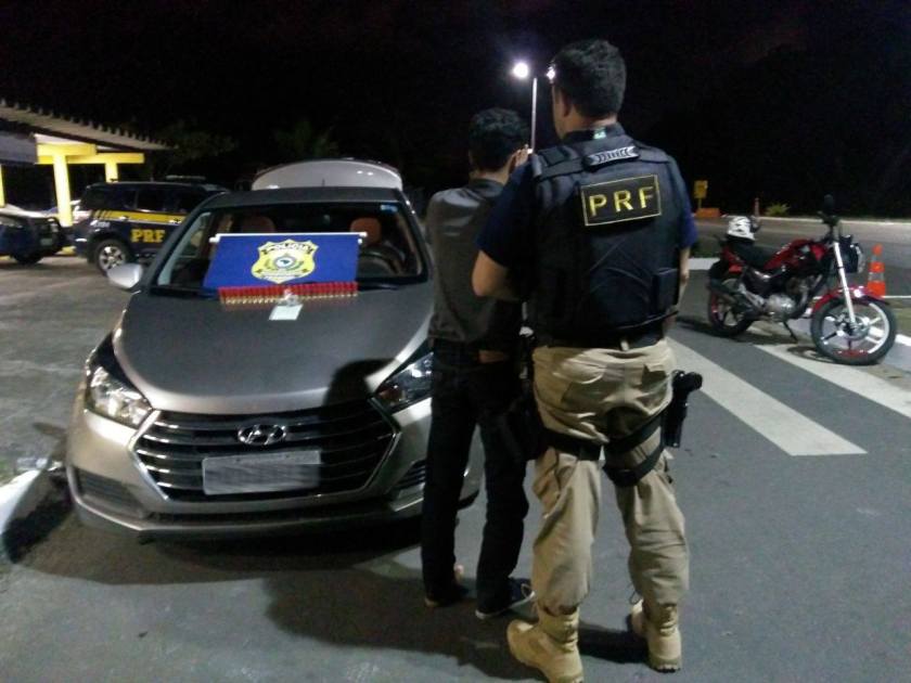 Policiais rodoviários federais apreenderam, na noite de sábado (20), em Itabuna/BA, um veículo Hyundai/HB20 com 24 munições e um Certificado de Registro e Licenciamento de Veículos (CRLV) com indícios de falsificação. O automóvel foi encontrado no KM 513 da BR 101, após o condutor desobedecer à ordem de parada dos PRFs e fugir em alta velocidade.