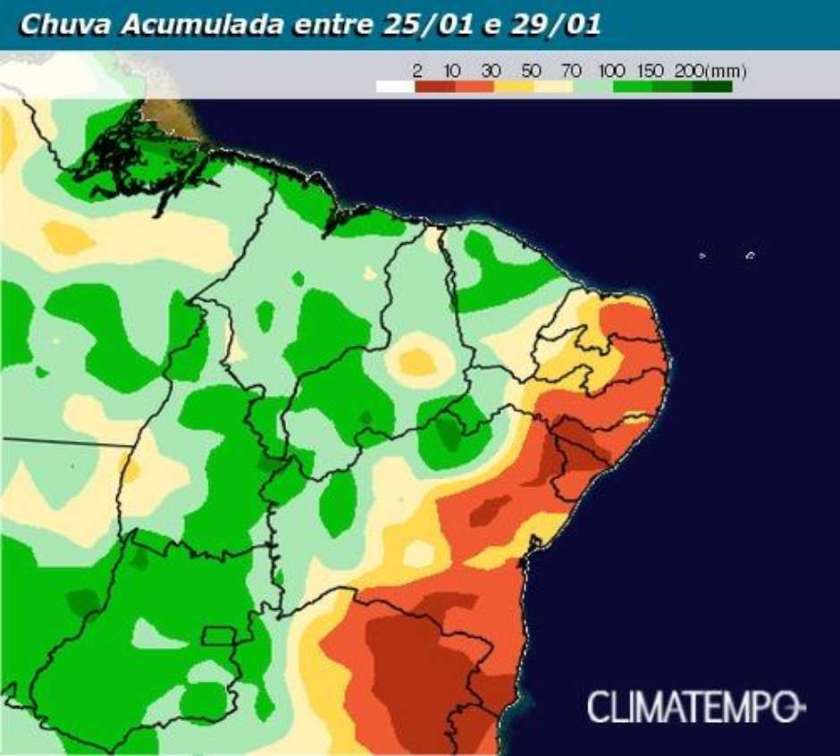 Até o final da semana há condições para pancadas de chuva por quase toda a Região, inclusive sobre áreas do Sertão. Até o interior do Bahia que está mais seco, volta a ter pancadas de chuva nos próximos dias. Chuvas fortes acontecerão no Tocantins, com picos de até 150 mm no período.