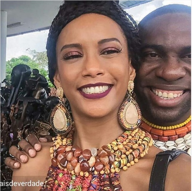 Taís Araújo, a atriz global que atualmente grava a quarta temporada de “Mister Brau” em Angola, junto com Lázaro Ramos, está usando peças, como o colar da foto, criadas pela designer gaúcha, radicada no Oeste baiano, Patrícia Villeroy.