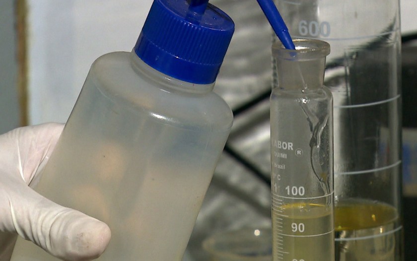 Em outro teste, a gasolina testada tinha 74% de etanol além de uma substância similar a solvente. “Não tem cheiro nem cor de gasolina”, constatou o técnico.