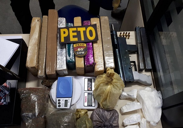 Uma metralhadora e 21 kg de drogas foram apreendidos, neste sábado (24), pelo Pelotão Especial Tático Ostensivo (Peto) da 65ª Companhia Independente da Polícia Militar.