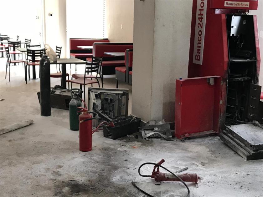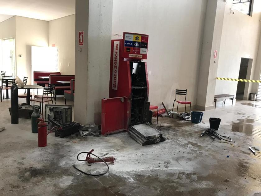 O caixa eletrônico do Shopping Popular, no bairro Santa Cruz, em Luís Eduardo Magalhães foi novamente arrombado, com a utilização de maçarico, extintor de incêndio e macaco hidráulico.