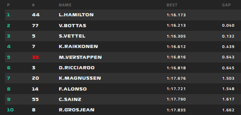 Os 10 primeiros classificados para o GP da Espanha de F1