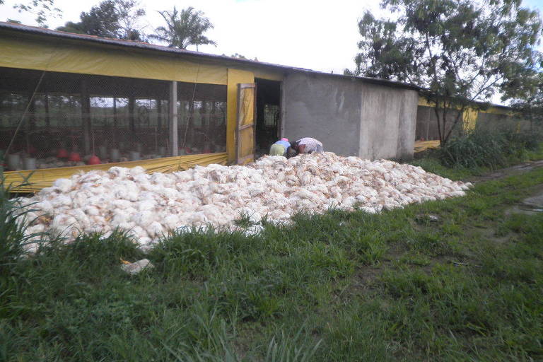 Os animais mortos são colocados em composteiras nas próprias propriedades, mas o sistema já está no limite. O risco ambiental e de saúde pública é crescente.