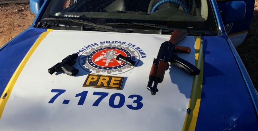 Réplicas de fuzil russo e de pistola de uso restrito foram localizadas, na manhã desta terça-feira (26), no município de Barreiras, região Oeste da Bahia. Equipes da Companhia Independente de Policiamento Rodoviário (CIPRv) acharam os materiais após blitz e perseguição.