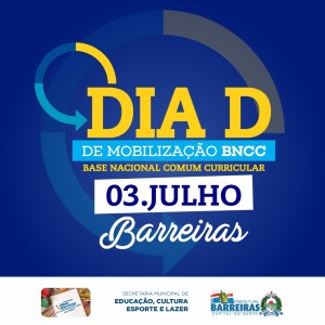 A próxima terça-feira, 3 de julho, foi a data escolhida como Dia D da Base Nacional Comum Curricular – BNCC em Barreiras. Professores, gestores e técnicos de educação da rede municipal estarão reunidos a partir das 08h no Espaço Le Rêve, para estudar, entender e discutir o documento que vai redefinir os currículos e Projetos Político-Pedagógicos – PPPs das escolas municipais. A campanha é uma iniciativa do Ministério da Educação, em parceria com Consed e Undime homologada em dezembro de 2017, e já mobilizou estados e municípios de todos os cantos do Brasil.